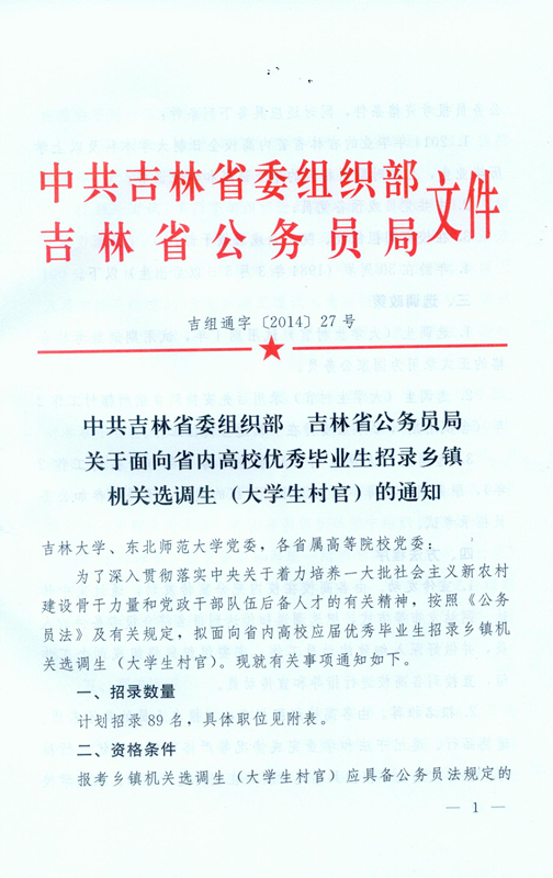 关于面向省内高校优秀毕业生招录乡镇机关选调生的通知