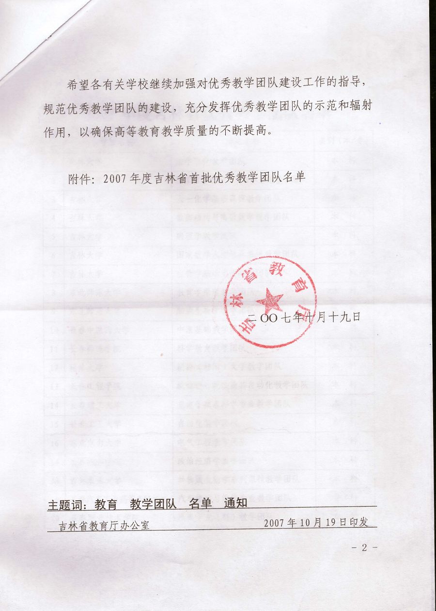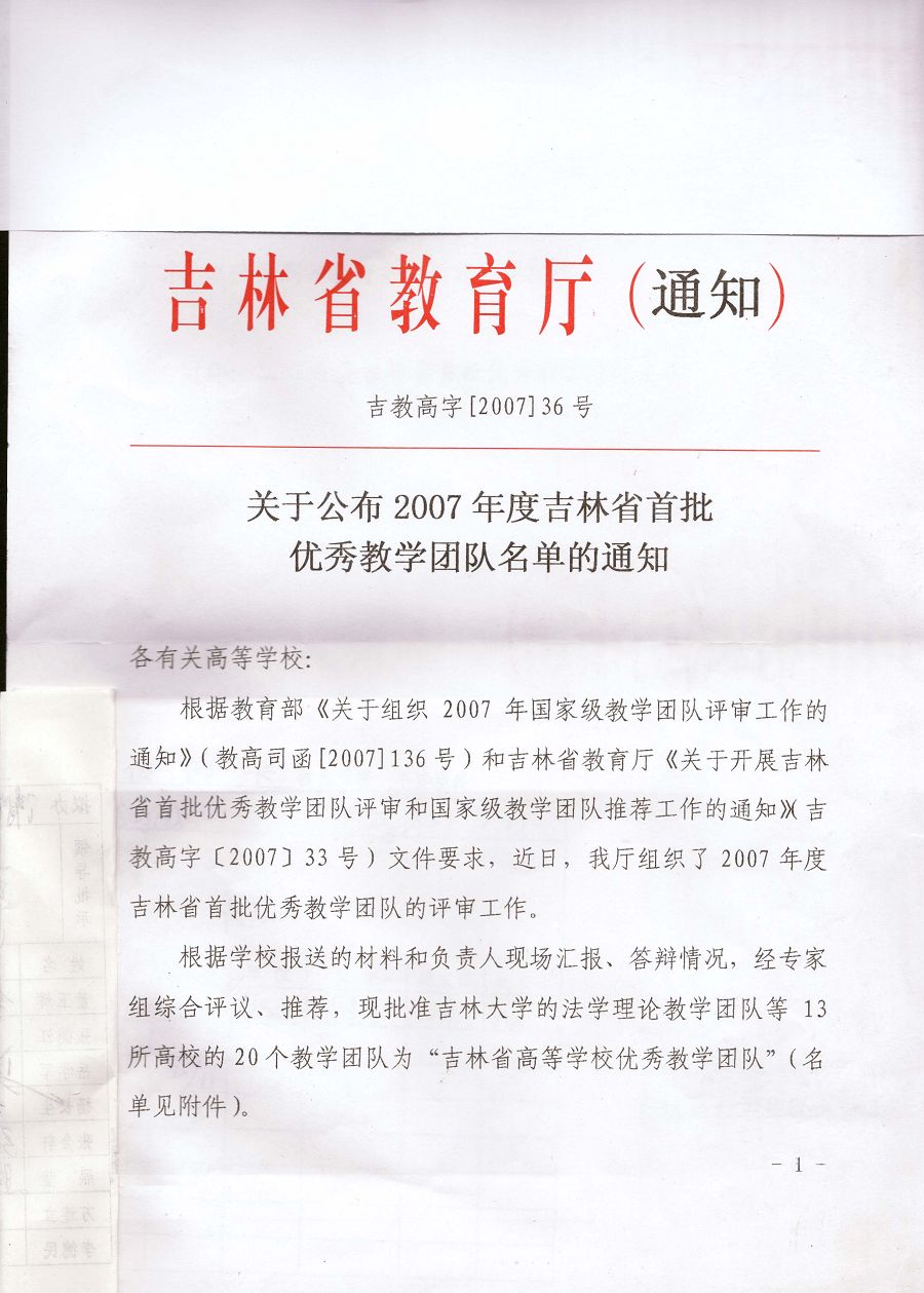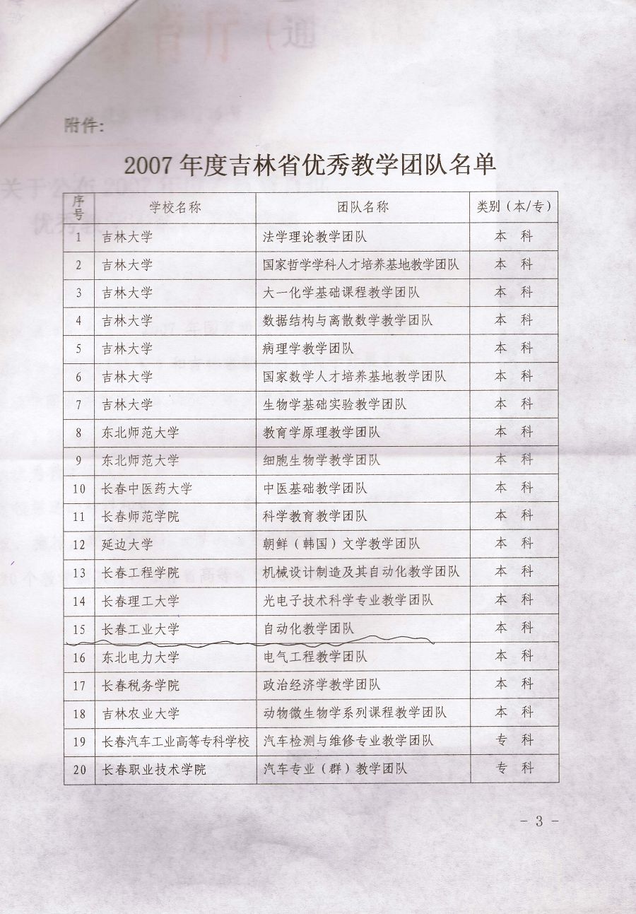 吉林省教育厅关于公布2007年度吉林省首批优秀教学团队名单的通知