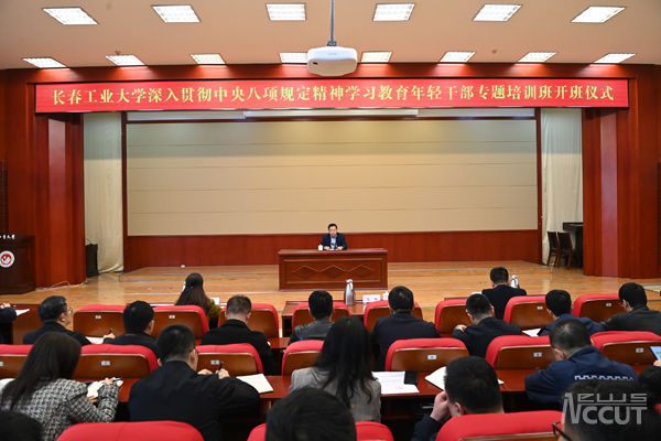 新闻网讯(通讯员 李明超)4月11日下午,学校在学术报告厅举办深入贯彻中央八项规定精神学习教育年轻干部专题培训班开班仪式,学校党委书记陈权出席并讲话,党委副书记李东玲主持会议。