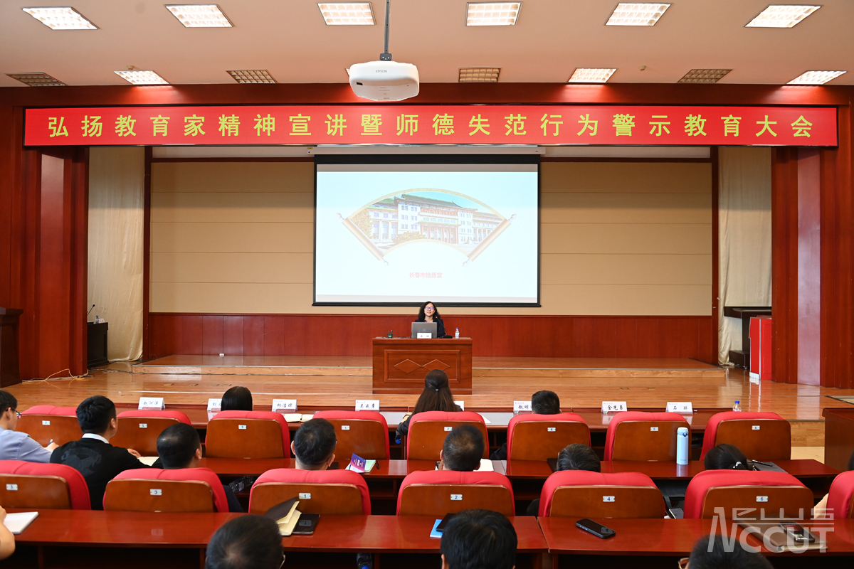 会议邀请吉林省高校黄大年式教师团队核心成员,吉林大学马克思主义学院石瑛教授担任宣讲嘉宾。石瑛教授以“传承黄大年精神,做新时代奋斗者”为主题,从精神内涵、时代价值、精神传承等三个方面,深情讲述了黄大年教授的卓越贡献和非凡人生,生动追忆其“为学、为事、为人”的先进事迹。她强调,黄大年精神集中体现为“心有大我、至诚报国”的爱国情怀、“教书育人、敢为人先”的敬业精神、“淡泊名利、甘于奉献”的高尚情操,号召全体教师将爱党报国之志、家国情怀和立德树人使命融入职业追求,自觉把“学为人师,行为世范”的要求内化为思想准则、外化为行动自觉,以高尚师德浸润学生心灵,以模范言行诠释师者本色。