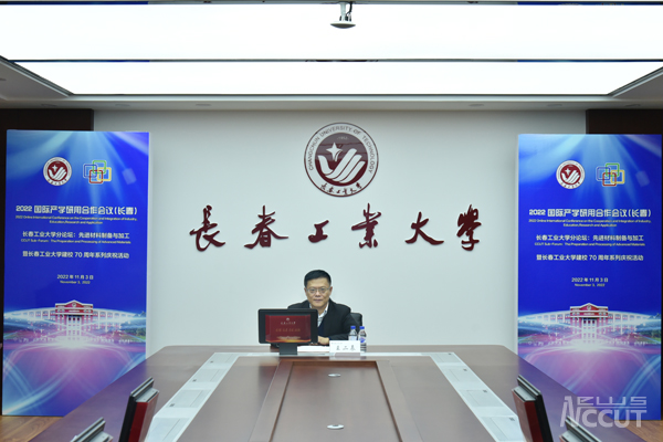 新闻网讯(通讯员 褚明利)11月3日下午,“2022国际产学研用合作会议(长春)”分论坛在ac米兰南湖校区办公楼五楼会议室举行,论坛采用线上线下相结合方式举办。校长张明耀、副校长王二辰出席会议并分别在开幕式和闭幕式上致辞。化学与生命科学学院赵金钵教授主持论坛。机电工程学院、材料科学与工程学院、化学工程学院、化学与生命科学学院院长、国际交流与合作处工作人员在线下参加论坛。