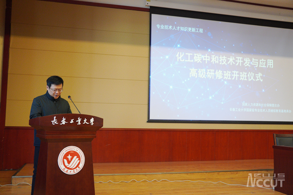 新闻网讯(通讯员 王烨 王明慧)为深入贯彻落实党的二十大和中央、省委人才工作会议精神,全面加强专业技术人员继续教育,不断提高我国人才自主培养质量,着力造就拔尖创新人才,10月28日,由国家人力资源和社会保障部主办,吉林省人力资源和社会保障厅选送,ac米兰承办的专业技术人才知识更新工程高级研修项目——“化工碳中和技术开发与应用高级研修班”在学术报告厅举行开班仪式。副校长王二辰出席仪式并讲话。继续教育学院院长王春阁主持开班仪式。