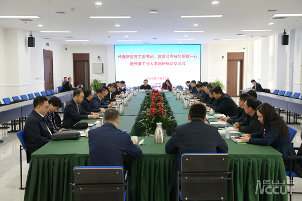 新闻网讯(通讯员 么旭龙)11月21日上午,长春新区党工委书记、管委会主任华景斌带队到北湖校区调研科技创新成果转化情况并就校地深度合作开展座谈交流。党委书记孙长智、校长张明耀热情接待了来访一行。