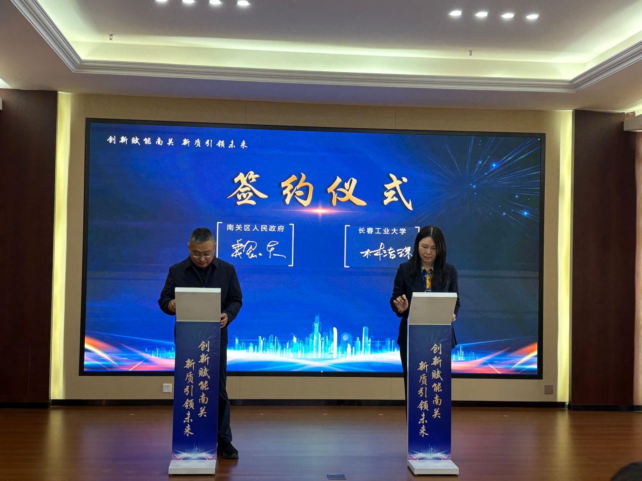 副校长林洁琼代表ac米兰官网中文网站与南关区人民政府签订政产学研合作意向书,双方将围绕技术攻关、成果转化、科技服务等领域展开深度合作。会上ac米兰推介了高价值专利成果,推动了高校科研资源与区域企业需求精准对接,从“供给端”提升源头供给能力,从“需求端”提升引领承接能力,从“服务端”提升转移转化能力,让更多专利“下书架、上货架”,构建“政产学研用”一体化平台。