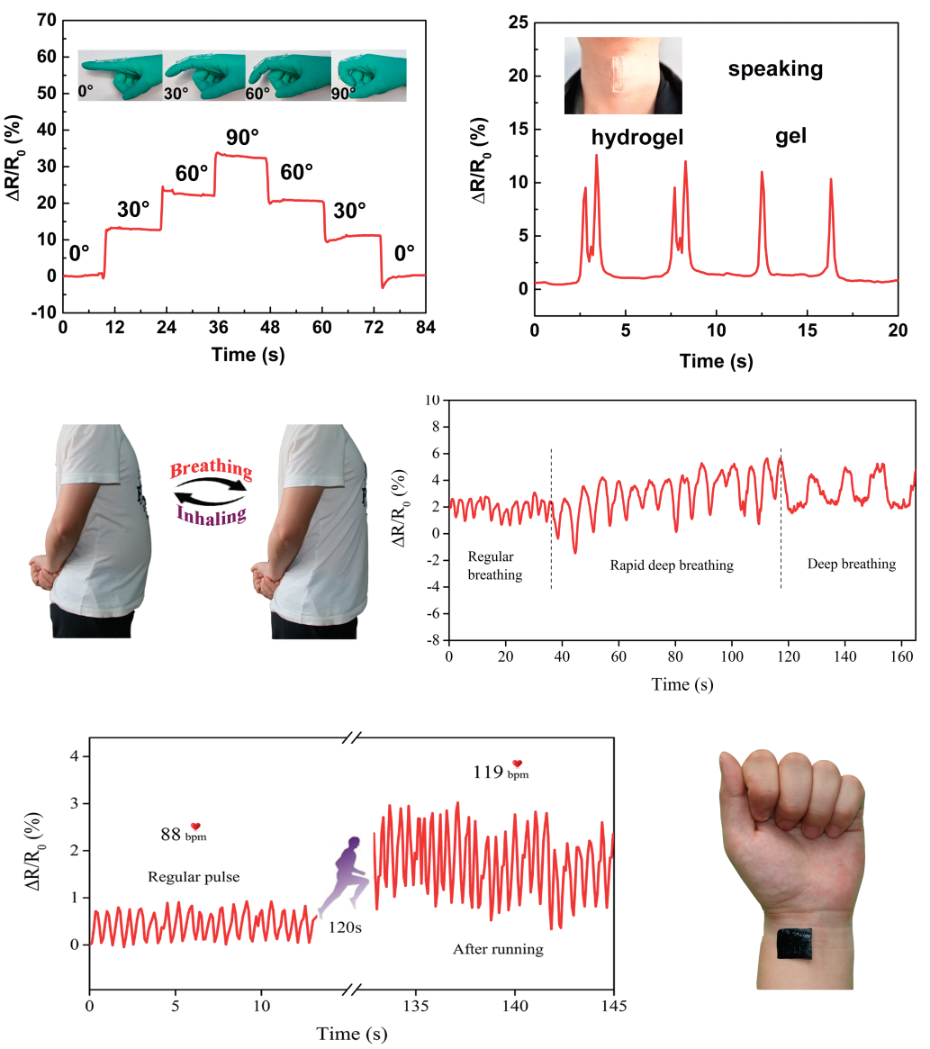 ac米兰自主研发的系列水凝胶电子器件,可被广泛应用于电子皮肤、人体健康监测、植入式设备、人机交互系统等方面。该产品主要是生物相容性较好的合成高分子及导电介质等成份组成。项目团队成功制备了一系列具有优异的机械性能、粘性、柔韧性、自恢复性和导电性的水凝胶,将这些水凝胶贴附到人体的各个部位,通过导线连接到接收器,可以实现对人体运动甚至是微弱生理信号的实时监测并转换成可输出的电子信号,包括脉搏,声带震动,呼吸以及关节运动等。可穿戴水凝胶传感器功能 :可以清晰的识别人体各关节的弯曲角度,可以将不同的声带震动转换成相应的波形,并且可以准确监测脉搏的跳动和呼吸频率。可穿戴柔性水凝胶传感器优点 :克服了传统智能传感器件刚性大、不可折叠拉伸的缺点,具有较高的应变灵敏度和响应速度,极大的提高了人体医用数据采集的准确性、便利性,具有广阔的应用市场。