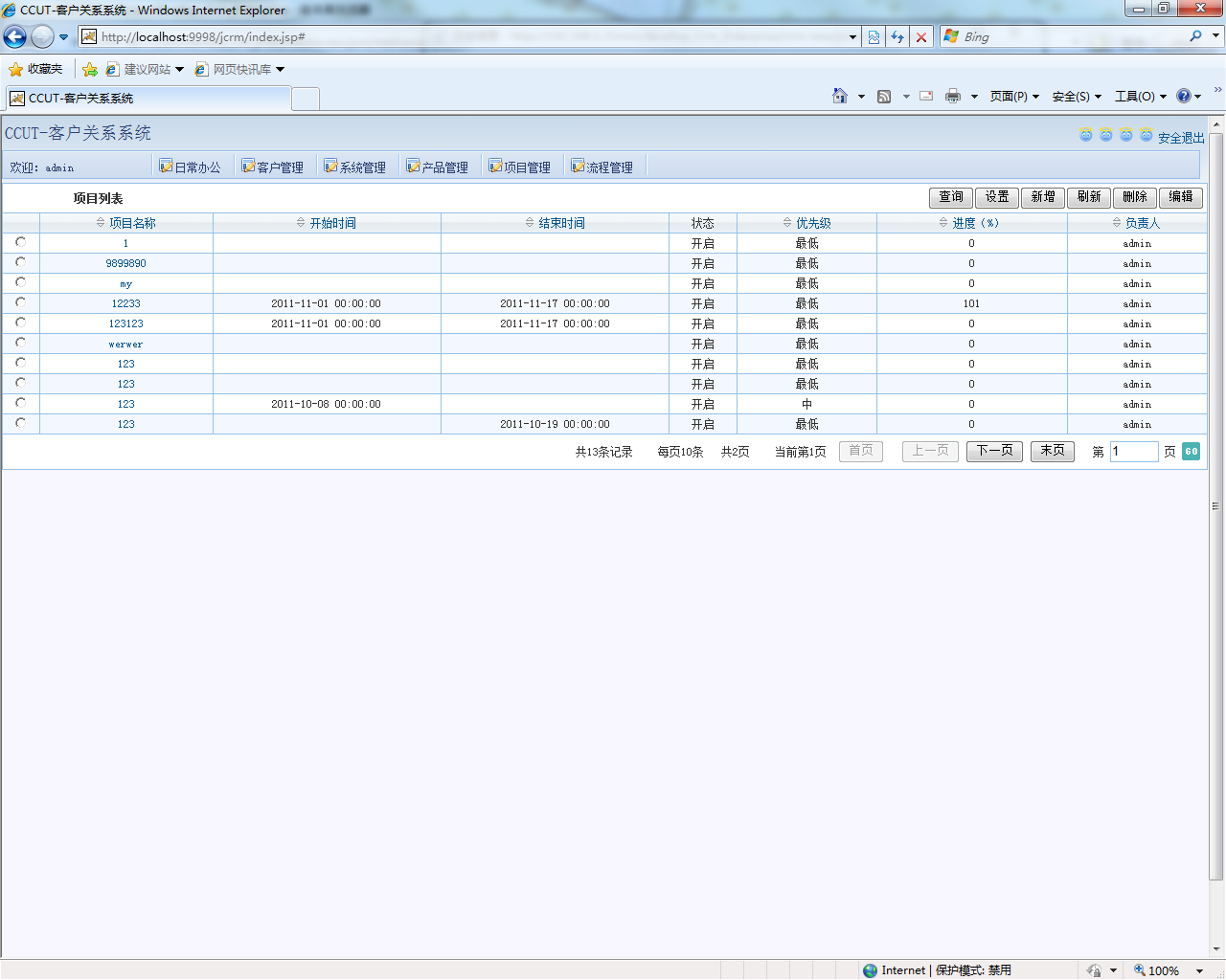 CCUT-客户关系系统软件是基于J2EE技术的客户关系管理系统,实现了客户管理、项目管理、产品管理、流程管理、日常办公、统计分析等功能。该管理系统可以极大的改善企业与客户之间的关系,提高客户的忠诚度,挖掘客户潜在价值,可以对企业的流程进行全面管理,帮助企业降低企业成本,通过更快速和更周到优质的服务来吸引和保持更多的客户。技术特点(技术指标)1、 科学有效管理企业的客户,保证企业利润持续增长;2、 简洁易用:推崇简洁风尚,拒绝复杂页面操作,无需专业培训,轻松上手;3、 贴心客户关怀:优化客户关系,挖掘客户价值,令客户满意,长久共赢;4、 精简管理流程:集成日常办公,项目管理,流程管理,加强部门协作;以及重名提醒,日常提醒,客户转移,快速办公;5、 严格权限控制:权限细化至各栏目、各人员及各功能操作,可设置多重角色,每个用户只能看到自己权限范围内的信息;6、 智能统计分析:强大的数据处理和分析功能,多种分析图示和表格,随时导出、打印,助力决策。市场前景调查显示,目前有45.3%的企业还未应用CRM信息化系统。在已经应用该系统的企业中,CRM系统应用主要就是客户管理,占到31.9%;其次是客户信息管理和联系人管理,这些应用比例集中在23~31%之间;其他应用还有销售管理(19.5%)、时间管理(15.1%)、供应商关系管理(12.8%)、客户服务(11.5%)和营销管理(10.5%)等,呼叫中心、合作伙伴关系管理、商业智能、电子商务、电话销售、知识管理、电话营销等比例均在10%以下。综上,本项目具有广阔的市场前景。效益分析CCUT-客户关系系统软件平均每套售价应该在8万左右,按一年10家企业使用该软件,经济效益在80万/年左右。企业通过使用客户关系系统实现提高内部员工的工作效率,节省日常开支;提高客户满意度;同客户保持长久的关系;增加营业收入,提高利润率的效果。综上,本系统具有良好的社会效益与经济效益。对合作者要求你想通过信息化客户关系管理来提高企业客户管理水平,提高企业利润的各类型企业。