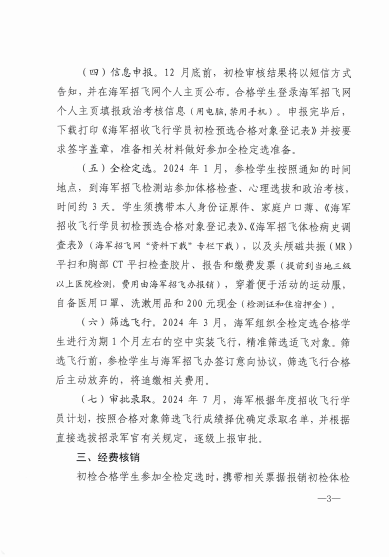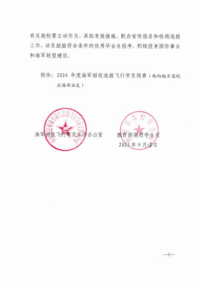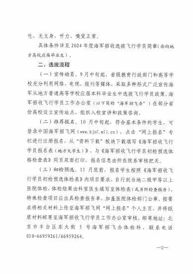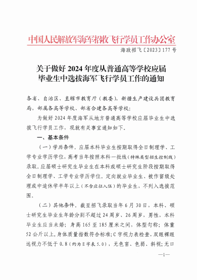 关于做好2024年度从普通高等学校应届毕业生选拔海军飞行员工作的通知
