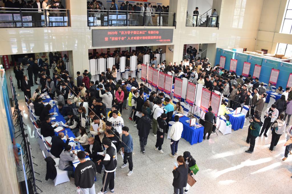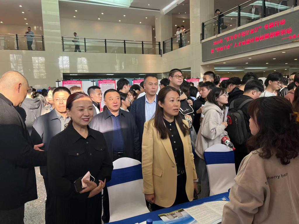 10月11日下午,2023“百万学子留辽来辽”专项行动暨”百校千企”人才对接计划、2023“二分明月 才聚扬城”秋季招聘会在南湖校区大学生活动中心举行。吉林省高等学校毕业生就业指导中心主任唐洪丰,辽宁省就业和人才服务中心副主任蔡民、大学生就业创业中心副主任陈洪龙,扬州市人才中心人才招引部部长郭明、综合部部长殷凯及招聘企业代表来校引才,校党委副书记李东玲,招生就业处相关人员,各学院毕业班辅导员到现场了解就业情况。