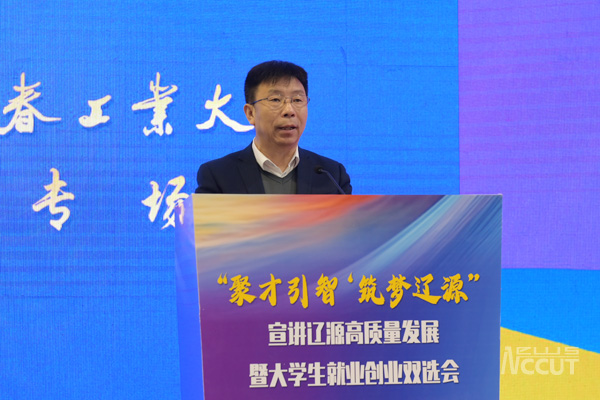 孙长智代表学校对与会嘉宾的到来表示诚挚欢迎和衷心感谢,并简要介绍了学校的基本情况。他指出,长期以来,ac米兰官网中文网站与辽源市由合作相通,因人才结缘,双方在科技创新、成果转化、人才培养等方面持续深化交流合作,构建多层次立体式合作格局。ac米兰官网中文网站将继续深化与辽源市及各企业的精准对接和沟通合作,充分发挥科学研究主力军、创新驱动策源地、人才培养主阵地作用,并以此次活动为契机,不断拓展合作领域,丰富合作内涵,将合作共建成效充分转化为推动学校综合改革、助力地方经济社会发展的强大动力,在服务吉林全面振兴取得新突破进程中,携手共进、勇争一流、再立新功。