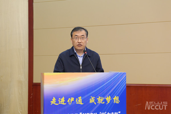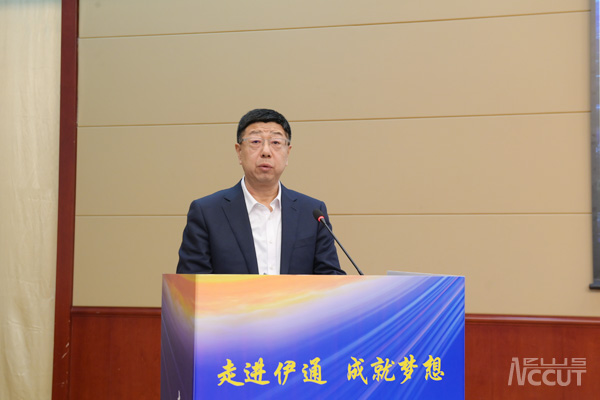 张明耀代表学校对与会嘉宾的到来表示诚挚欢迎和衷心感谢,并从学校发展历程、办学特色、专业建设、人才培养等对学校基本情况作简要介绍。他指出,伊通县人文积淀厚重,是满族重要发祥地和聚居区之一,创造了灿烂的满族文化,区位优势明显、自然禀赋优越。工大与伊通,虽然地处两城,但一直心意相通、情谊相连,双方签署了校地战略框架协议、产学研项目合作协议等五项合作共建协议,合作领域不断拓宽、层次不断提升、成效不断显现。他强调,在双方共同的努力下,依托伊通的坚实产业基础和学校的学科优势,合作成果将不断扩大、合作前景将更加广阔。
