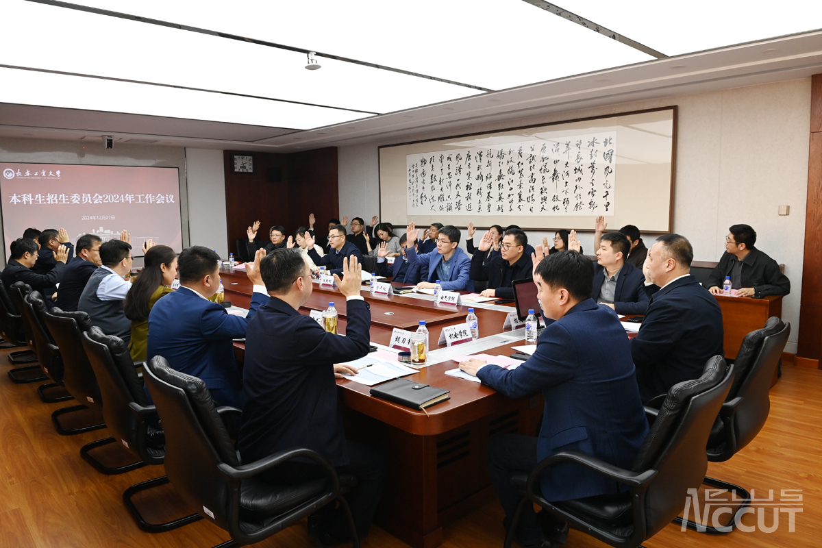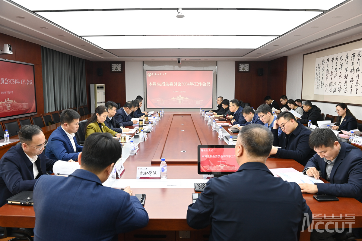 党委副书记吴成章代表学校本科生招生委员会从科学调控,合理分配计划;严密组织,平稳实施录取;优化分组,保障生源数量;强化宣传,优化生源结构;重视细节,保障录取工作安全有序;落实政策,积极完成招生相关工作等六个方面对2024年本科招生工作进行全面总结。对做好2025年本科招生工作提出明确要求:一是着力提升招生计划制定的科学性与合理性,确保契合学校发展与生源实际;二是持续完善招生工作沟通协调机制,保障各环节衔接顺畅;三是全力完善招生工作宣传体系,增强学校招生吸引力。