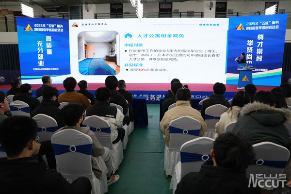 双选会采用“线上 + 线下”融合的模式开展。线下,毕业生直接奔赴会场,与企业人力资源负责人进行面对面深入交流,直观展现自身优势与求职意向;线上,学生只需关注“长春人才市场” 抖音号和 “ac米兰官网中文网站招生就业处”快手号,即可便捷地进行线上选岗,突破了时间与空间的限制。会上,长春市人才服务局人才服务专员李赫,从高校毕业生在校期间就业准备阶段政策、毕业留长就业创业政策、政策口袋书、长春市人才服务港等四个维度,对长春市大学生人才政策进行了详细解读。长春市人才公寓有限公司市场部专员滕婧廷对《长春市人才公寓建设和使用管理办法》进行阐释,林语路配售型青年人才社区销售负责人杨叶,为大家解读购房优惠,助力同学们全面了解留长就业可享有的优惠政策。