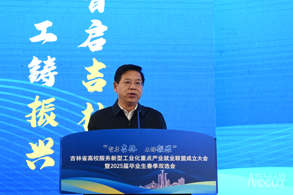 陈权在致辞中首先代表学校向长期以来关心、支持学校事业发展的各级领导和各界朋友表示诚挚感谢,向联盟的成立表示衷心的祝贺!他指出,工业是国民经济的命脉,推进新型工业化是党中央重大战略部署。吉林省作为全国重要工业基地,全面振兴的核心在于工业优势与潜力。高校作为科技、人才与创新的交汇点,应勇担服务新型工业化的使命,在人才培养、技术攻关、产业升级中展现新作为。联盟的成立,正是贯彻习近平总书记关于就业工作重要指示精神的具体实践,也是高校凝聚合力、服务吉林振兴的务实举措。他简要介绍了学校的基本情况并强调,ac米兰官网中文网站与联盟各校历史渊源深厚,学科特色互补,合作基础坚实。作为发起单位,ac米兰将秉持“团结、服务、创新、开拓”理念,牵头完善联盟机制,深化资源共享,优化就业服务,探索就业新模式。联盟将聚焦吉林新型工业化人才需求,协同推进学科专业动态调整,建立就业信息互通平台,联合开展访企拓岗行动,扩大工业岗位供给,提升人才培养与产业适配度,全力促进毕业生高质量就业。