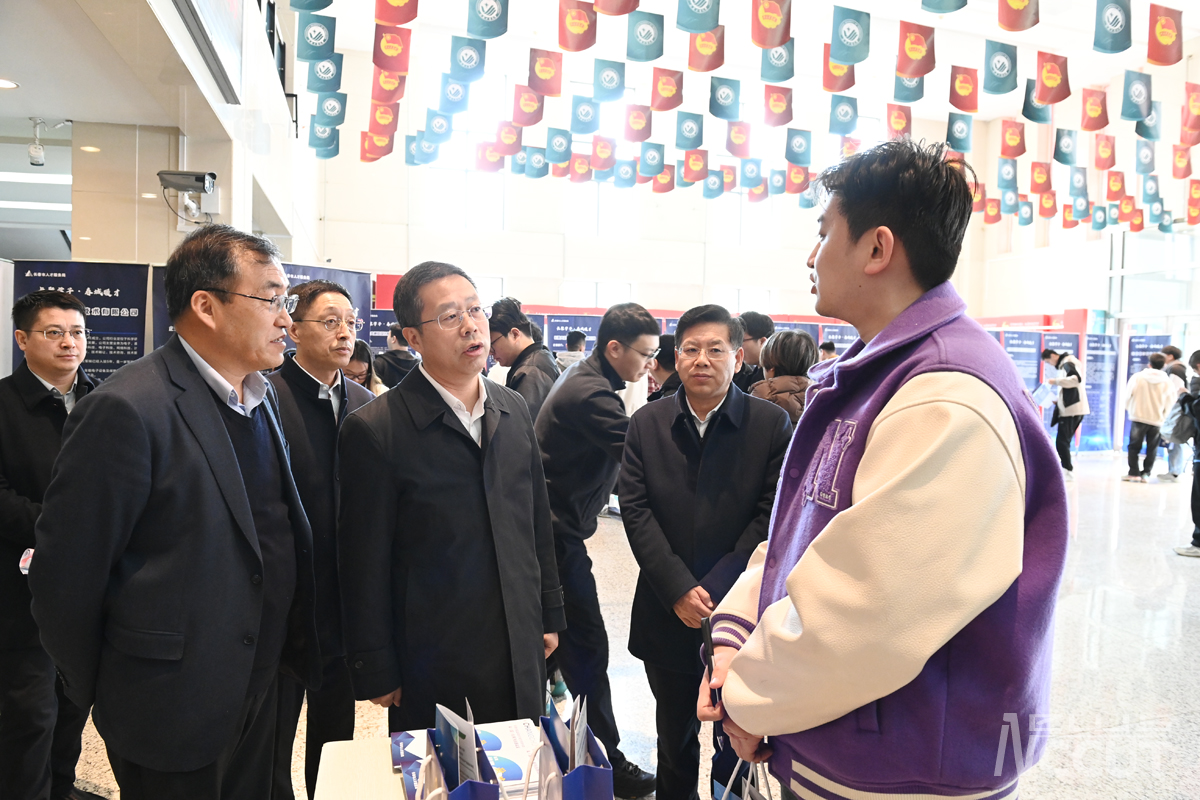 宣讲会后,与会领导前往优质企业岗位信息展示区,进行调研指导,深入了解企业招聘需求和学生就业意向。