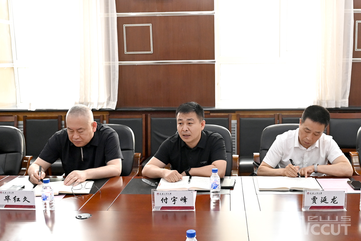 付宇峰对学校热情接待表示衷心感谢,他深情回忆了在校求学经历,对学校近年来办学所取得的成就给予高度评价。随后,付宇峰和毕红久分别对安保集团和集团下属赫基公司概况、业务范围、未来发展规划进行了详细介绍。希望通过此次交流,加强与学校对接交流,创新合作机制,实现合作共赢,共同发展。