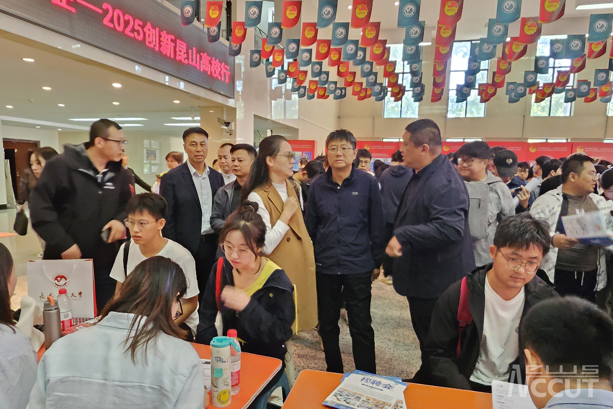 招聘会期间,双方还召开合作交流座谈会。招生就业处处长付宏波与昆山人力资源市场党委委员庄春龙共同回顾了双方的合作历史,并就毕业生就业情况进行了深入交流。荣琴、华成分别就昆山相关情况进行介绍。机电工程学院党委副书记杨楠、电气与电子工程学院党委副书记谷阔分别介绍了各自学院2026届毕业生规模、专业分布及就业实习基地建设成果;昆山丘钛微电子科技股份有限公司、好孩子儿童用品有限公司的企业HR详细说明企业发展情况、核心业务领域及具体用人需求,校企双方进行了精准对接。